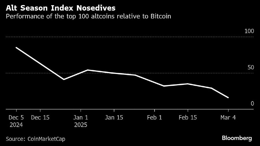 Selama pasar bullish 2021, Bitcoin menguat, dan kemudian sejumlah alt coin mengikuti sebagai gelombang kedua. Kali ini, Bitcoin dan koin kripto lainnya bergerak beriringan, dan jatuh pada waktu yang sama. Bitcoin turun sebanyak 28% sejak puncaknya di bulan Januari. Solana dan Dogecoin, yang lebih tidak stabil, turun lebih dari 50% dari level tertinggi baru-baru ini.
