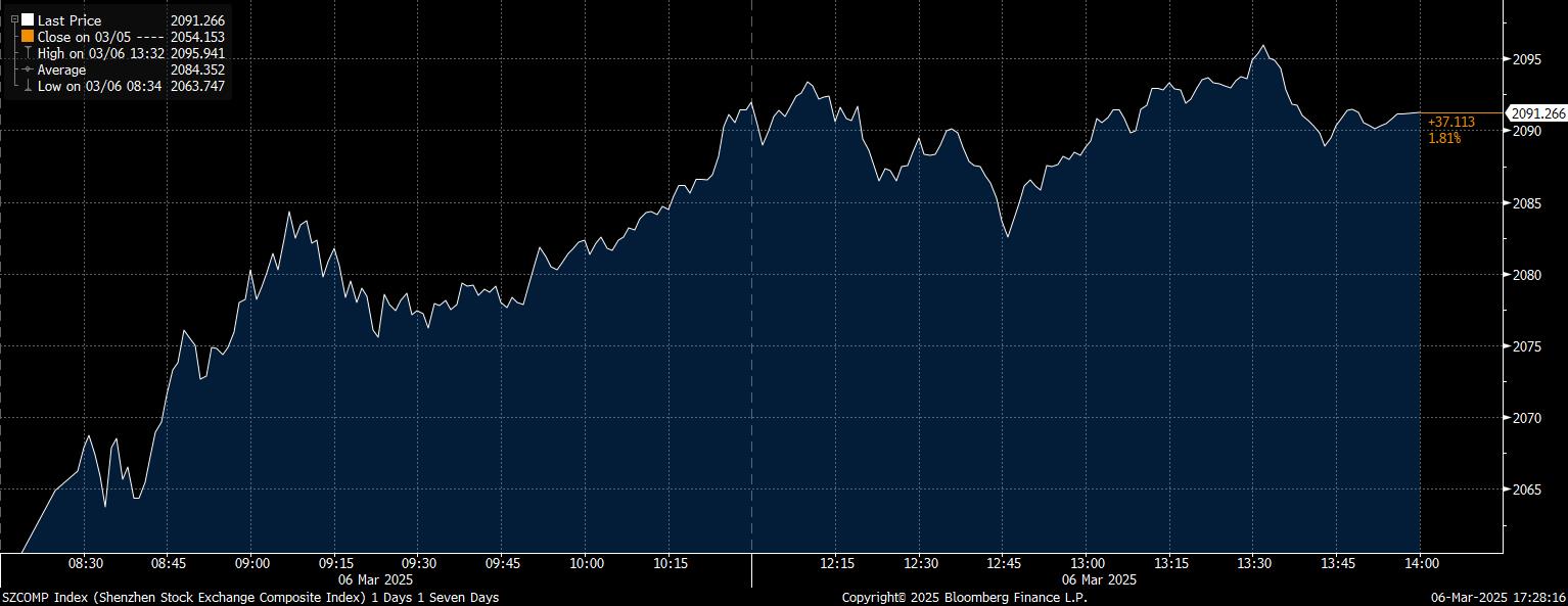 “Tekad Pemerintah China untuk membidik target pertumbuhan Ekonomi yang tinggi telah membangkitkan harapan investor akan ada lebih banyak paket stimulus Ekonomi yang akan diluncurkan serta menambah optimisme yang dipicu oleh janji untuk meningkatkan penguasaan teknologi, mulai dari kecerdasan buatan (artificial intelligence/AI) hingga Komputasi Kuantum,” mengutip riset harian Tim Research Phillip Sekuritas.