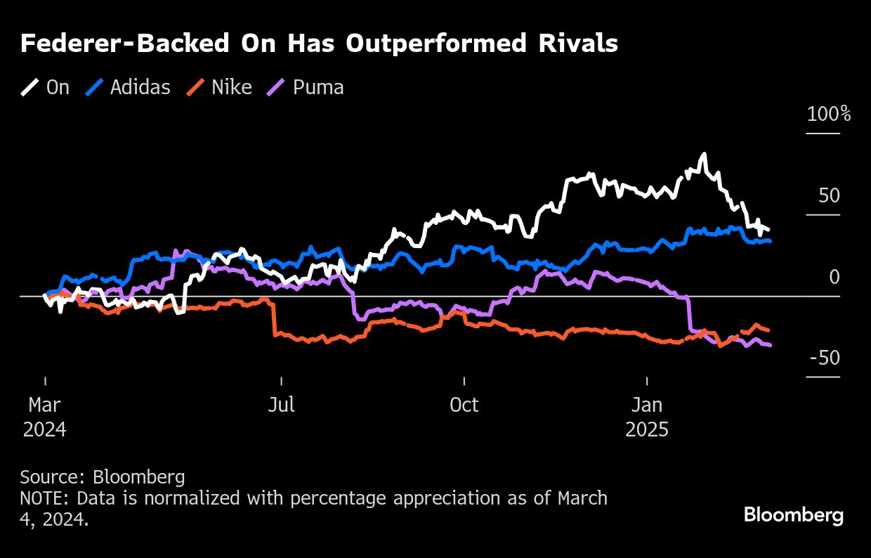 Didirikan pada 2010, On berkembang pesat berkat kombinasi pemasaran berbasis komunitas dan dukungan dari duta merek terkenal, termasuk aktor dan penyanyi Zendaya. Bulan lalu, legenda tenis Roger Federer tampil dalam iklan Super Bowl pertama On, sebagai bagian dari upaya meningkatkan kesadaran merek dan menarik lebih banyak penggemar.