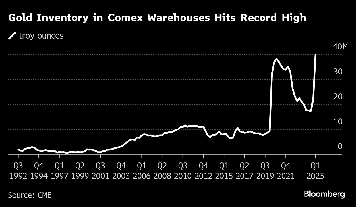 Inventori di gudang Comex menyentuh 39,7 juta ons pada Rabu (5/4/2025) waktu setempat. Nilainya mencapai US$ 115 miliar.