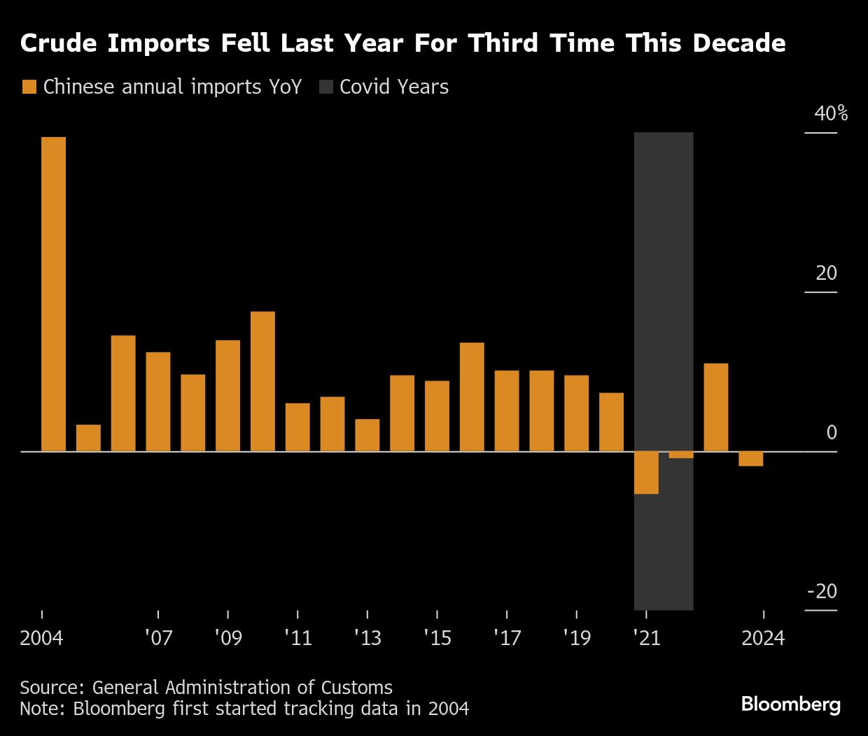 Permintaan China menjadi fokus khusus tahun ini setelah impor negara tersebut menurun pada 2024 untuk ketiga kalinya dalam dekade ini, menggarisbawahi bagaimana konsumsi dirusak oleh transisi energi negara tersebut dan pergeseran ekonominya.