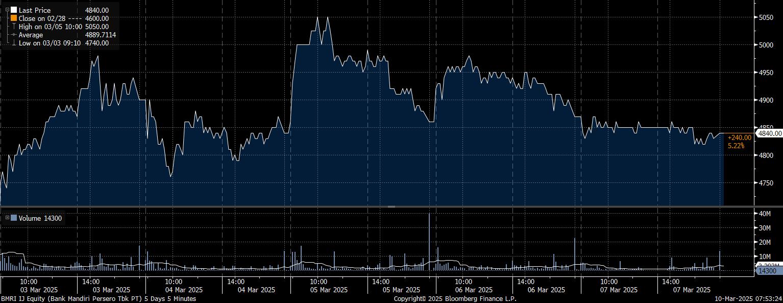 Berikut 5 saham dengan angka net sell terbesar oleh investor asing sepanjang perdagangan sepekan 3–7 Maret 2025: