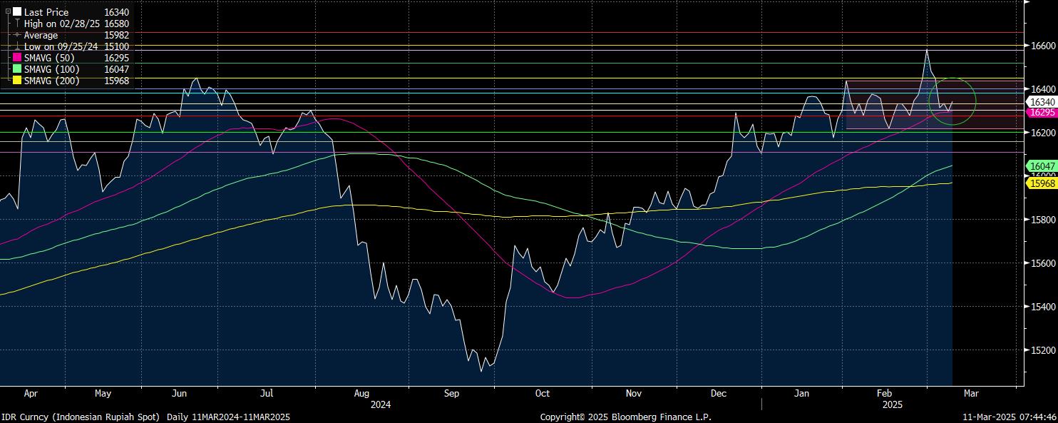 Apabila kembali break support tersebut, berpotensi melemah lanjutan dengan menuju level Rp16.450/US$ sebagai support terkuat.
