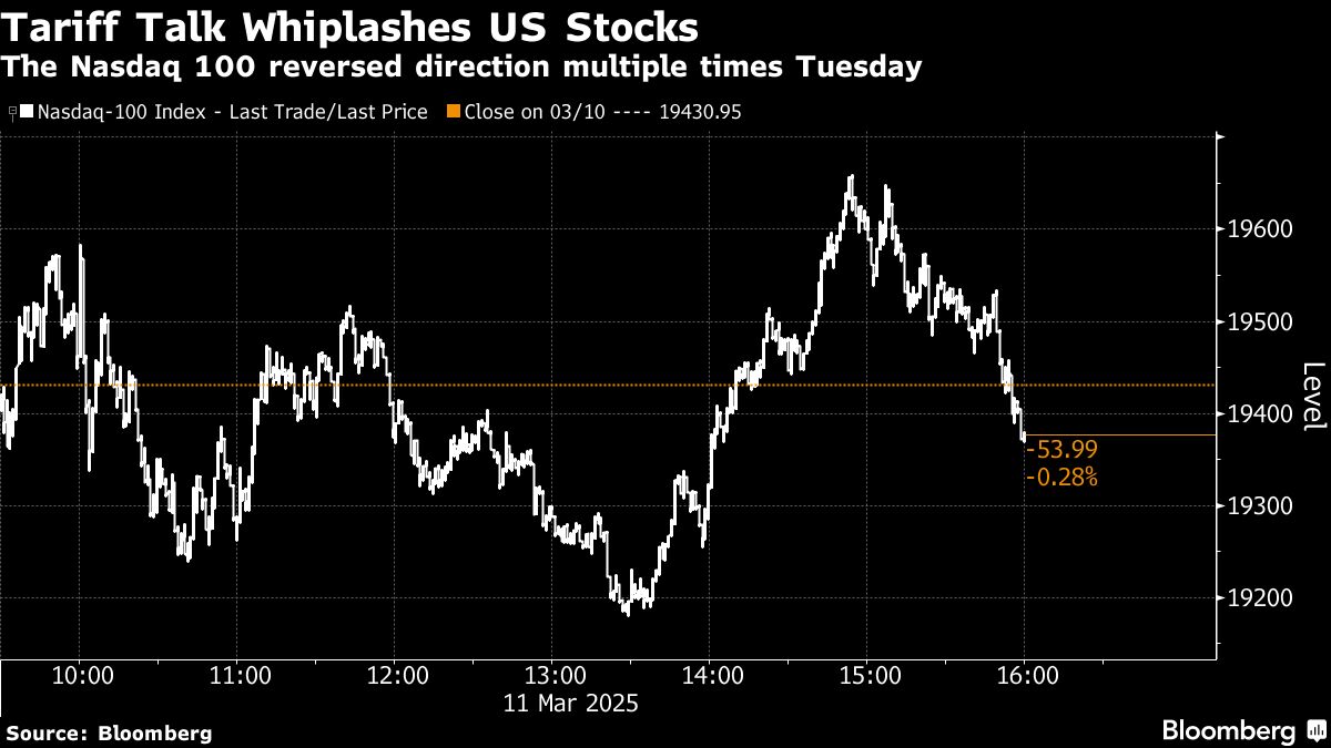 Dalam beberapa minggu singkat, itu telah berubah menjadi gejolak volatilitas yang hampir tak berhenti yang dipicu oleh peluncuran kacau rencana-rencana Trump melalui unggahan media sosial dengan huruf kapital atau penampilan di televisi. Hari Selasa pun tidak berbeda: Pada sore hari—saat saham memangkas kerugian dengan prospek gencatan senjata di Ukraina—Trump mengatakan bahwa dia sedang mempertimbangkan kembali kenaikan tarif terhadap Kanada yang sebelumnya dia usulkan hanya beberapa jam sebelumnya.