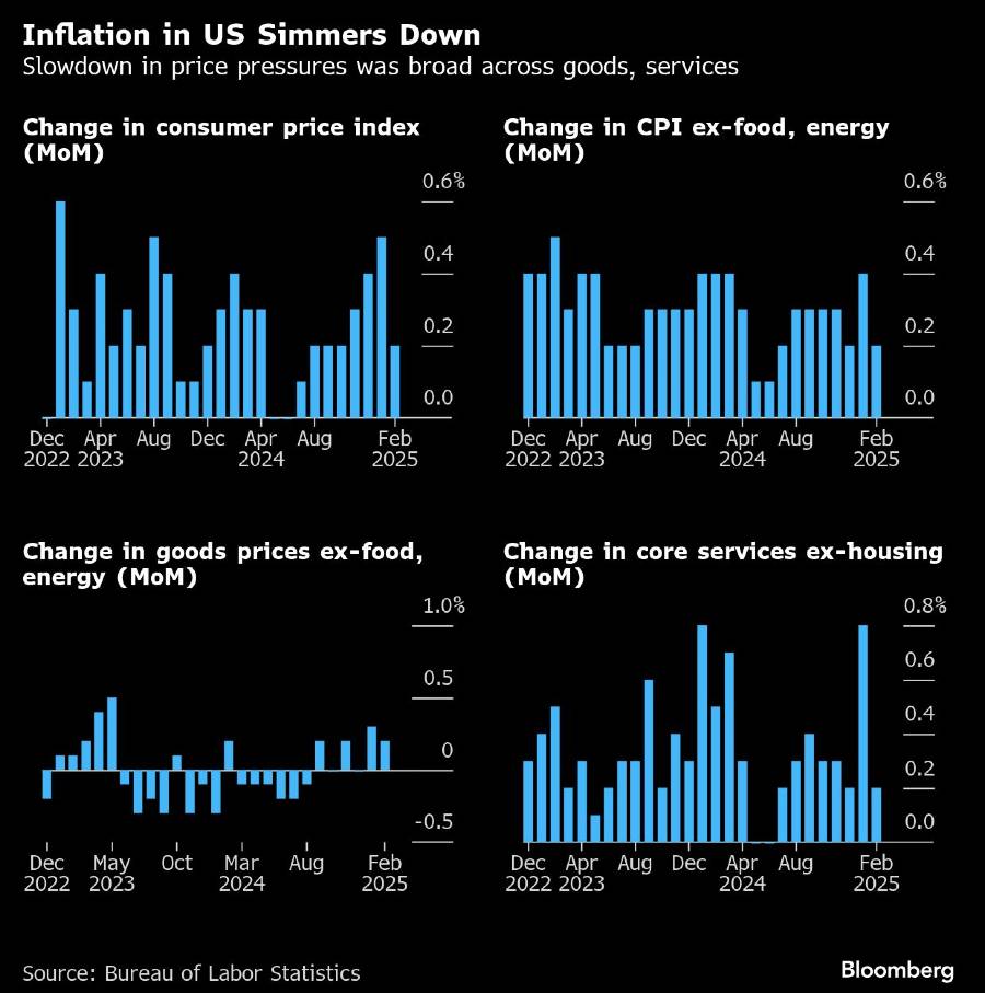 Bloomberg, Harga konsumen AS naik dengan laju paling lambat dalam empat bulan terakhir pada Februari, memberi sedikit keringanan menjelang penerapan tarif, yang diperkirakan akan mendorong biaya lebih tinggi.
