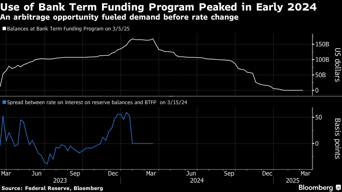 Penggunaan BTFP mencapai puncaknya ketika beberapa pemberi pinjaman memanfaatkan peluang ini, lalu anjlok setelah The Fed mengubah aturan terkait suku bunga pinjaman.