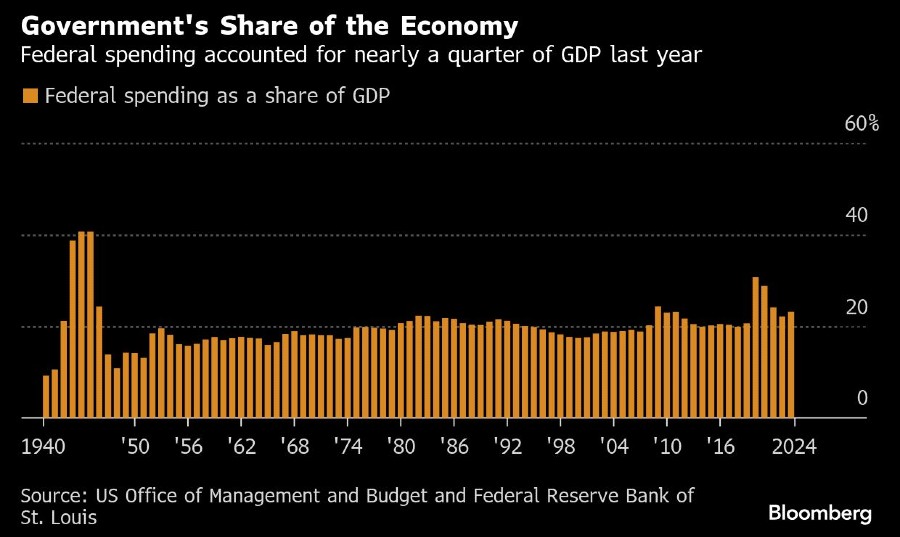 Belanja federal menyumbang sekitar seperempat dari PDB AS, sehingga pemotongan sebesar, yang digembar-gemborkan Musk, mengancam melemahkan perekonomian, tepat saat pasar sudah gelisah dengan risiko perlambatan.