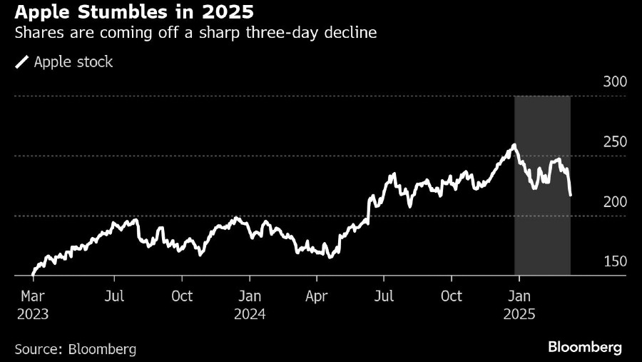 Saham telah turun 14% tahun ini, dan baru saja mengalami penurunan terbesar selama tiga hari sejak November 2022, sebuah aksi jual yang membawa perdagangan Apple ke penutupan terendah sejak September. Saham Apple turun 0,8% pada hari Kamis waktu setempat.