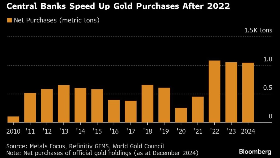 Fondasi untuk reli emas sebagian ditentukan oleh kehati-hatian bank sentral global yang sangat bergantung pada dolar AS, juga merupakan cerminan dari ketidakpastian geopolitik.