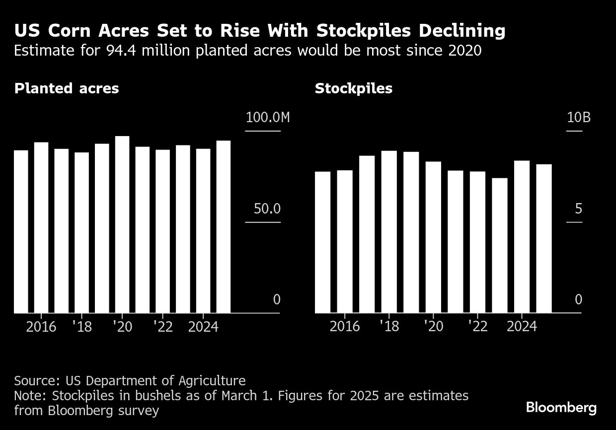 Petani Amerika diperkirakan akan menanam lahan jagung terbanyak dalam lima tahun terakhir, yang berpotensi meningkatkan pasokan di negara produsen dan eksportir terbesar di dunia. Departemen Pertanian AS akan merilis prospek tahunan penanaman musim semi pada hari Senin (31/3), bersamaan dengan laporan triwulanan tentang stok biji-bijian.