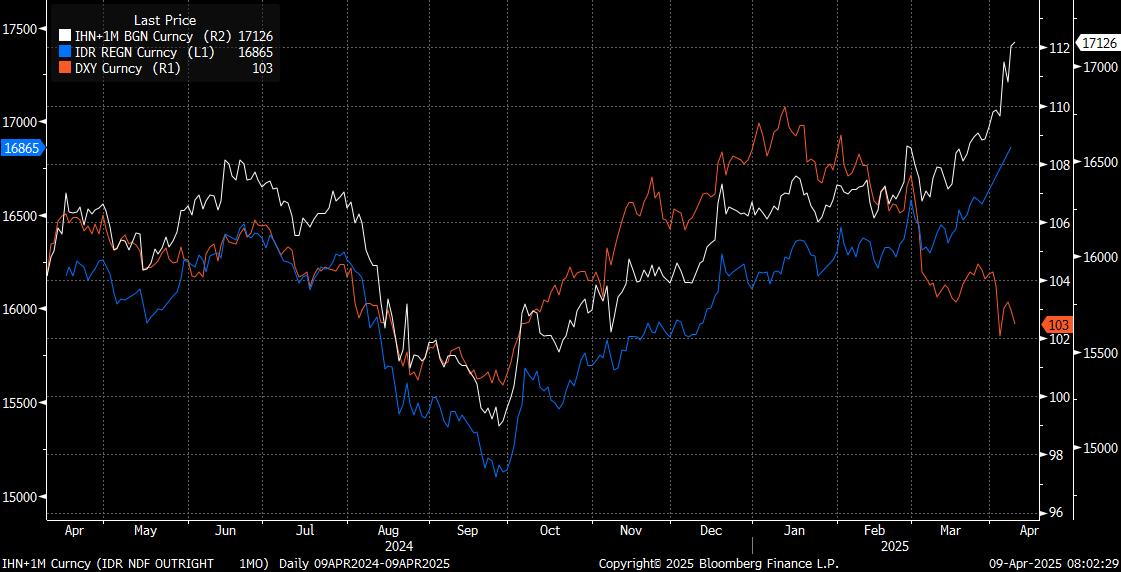 Mengacu data Bloomberg, rupiah NDF pada penutupan bursa New York kemarin, ditutup melemah tajam 1,12% di level Rp17.105/US$.