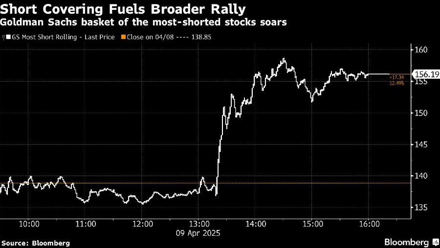 Saham Goldman Sachs Group Inc yang paling banyak dijual melonjak 17,34%, mengalahkan kenaikan S&P 500. Pergerakan ini terjadi karena para pedagang bergegas menutup posisi short yang mereka kumpulkan di tengah penurunan pasar. Pekan lalu, hedge fund mencatat taruhan short pada produk makro AS, seperti indeks dan ETF dengan volume mingguan tertinggi yang pernah tercatat.