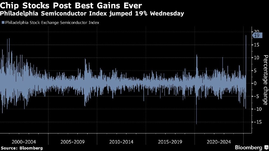Saham Nvidia Corp melonjak 18,03%, Delta Air Lines Inc melonjak 23,38%, Advanced Micro Devices naik 23,82%, dan Tesla Inc menguat 22,69%%. Indeks menakutkan Wall Street, Cboe Volatility atau VIX, anjlok menjadi 35 dari 50.