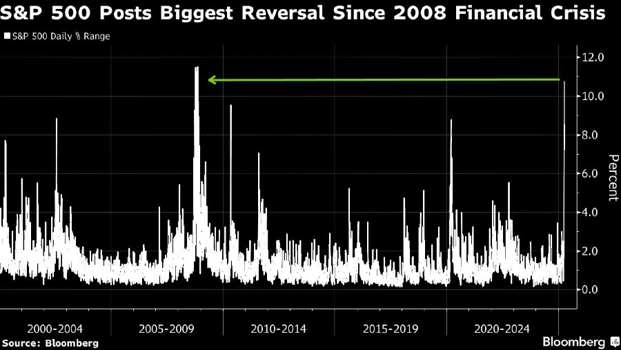 Pasca penundaan pemberlakuan tarif oleh Trump, bursa AS mencatatkan kenaikan dengan indeks S&P 500 bertengger di level 5.456,9 (+9,5%). Nasdaq 100 melompat 12%. Wall Street bahkan mencatatkan pergerakan terbaik harian sejak 2008.