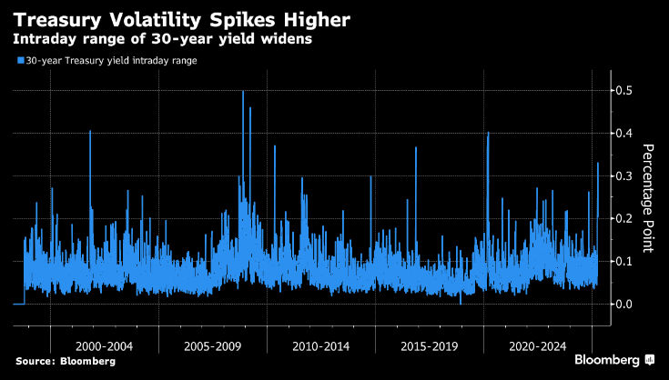 Pergerakan harga Treasury, yang diindikasikan oleh tingkat imbal hasil, berakrobat dengan volatilitas nan tajam ketika harga saham juga menghadapi roller coaster yang besar dalam dua pekan terakhir.