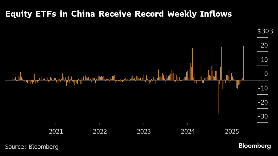 “Mengingat bahwa kita baru berada di tahap awal dari dampak longsoran tarif Presiden AS Donald Trump, 2025 bisa jadi merupakan tahun rekor untuk aset ETF yang dikelola China, karena dukungan berkelanjutan dari dana investasi yang didukung pemerintah China,” analis ETF senior BI Rebecca Sin dan Eric Balchunas menulis dalam sebuah catatan.