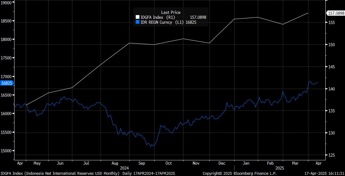 Pada bulan Maret lalu, nilai cadangan devisa RI menembus level tertinggi dalam sejarah lagi di angka US$ 157,08 miliar. Bank Indonesia mengatakan kenaikan itu adalah bersumber dari penerimaan pajak dan jasa serta penarikan pinjaman luar negeri pemerintah.