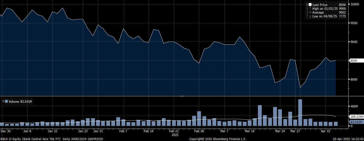 Adapun investor asing paling banyak menjual saham PT Bank Central Asia Tbk (BBCA) mencapai Rp11 triliun lebih. Imbas tekanan jual yang amat masif itu, saham BBCA sepanjang tahun melemah 12,14% ke posisi Rp8.500/saham.