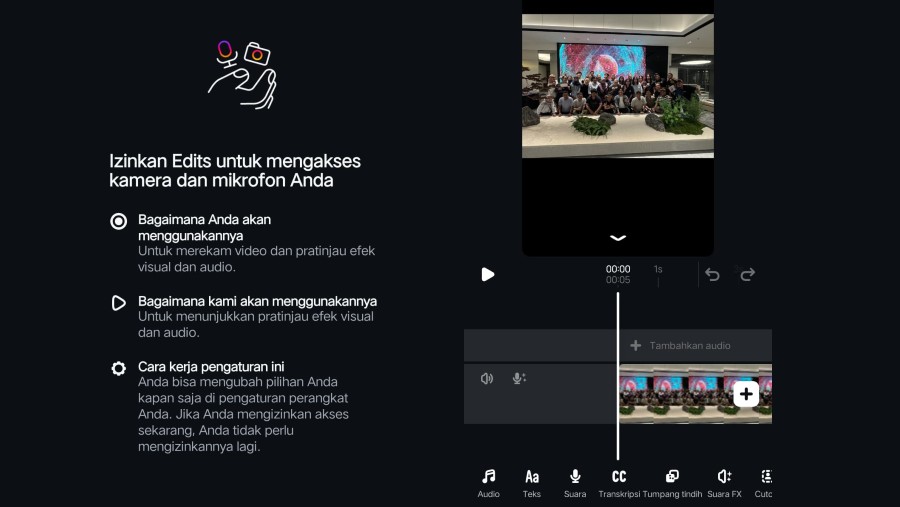 Edits juga dilengkapi sejumlah fitur yang mengingatkan konten kreator pada CapCut—alat penyunting video milik TikTok, ByteDance—ditujukan khusus untuk kreator konten yang ingin bekerja cepat dan efisien.