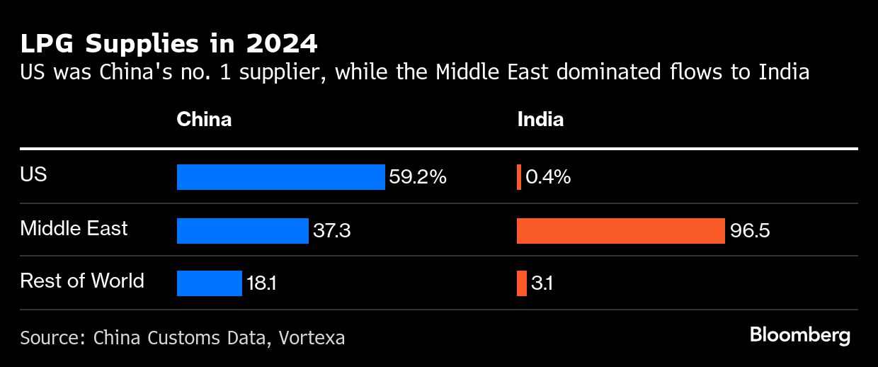 Hal ini dikarenakan pasokan dari negara-negara seperti Arab Saudi cenderung terdiri dari propana dan butana, sementara pengiriman dari AS biasanya terdiri dari 100% propana, yang lebih diminati oleh pabrik-pabrik China yang mengubah bahan baku menjadi plastik di pabrik dehidrogenasi propana (PDH).