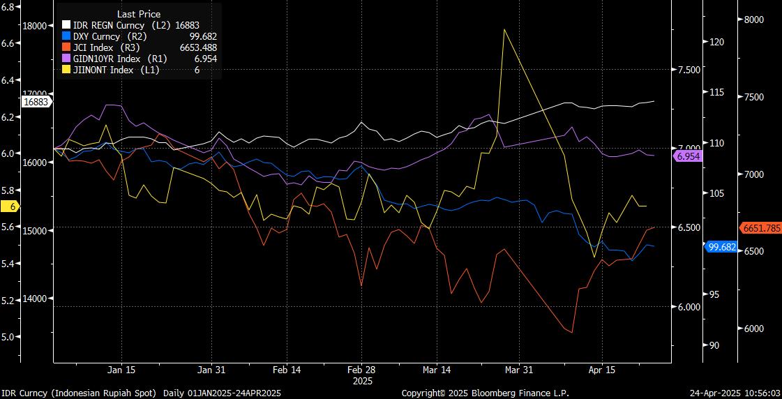 Berdasarkan informasi yang diterima analis, "...Menyiratkan bahwa pemangkasan suku bunga sedang dibahas secara intensif dalam rapat Dewan Gubernur BI [kemarin]. Maka itu, kami memajukan ekspektasi pemangkasan suku bunga BI rate sebesar 25 bps pada Mei atau Juni nanti dari tadinya diperkirakan pada Semester 2-2025 karena nilai rupiah sudah dinilai terlalu rendah," kata Head of Research Bahana Sekuritas Satria Sambijantoro dan Research Analyst Lintang dalam catatannya, dikutip Kamis (24/4/2025).