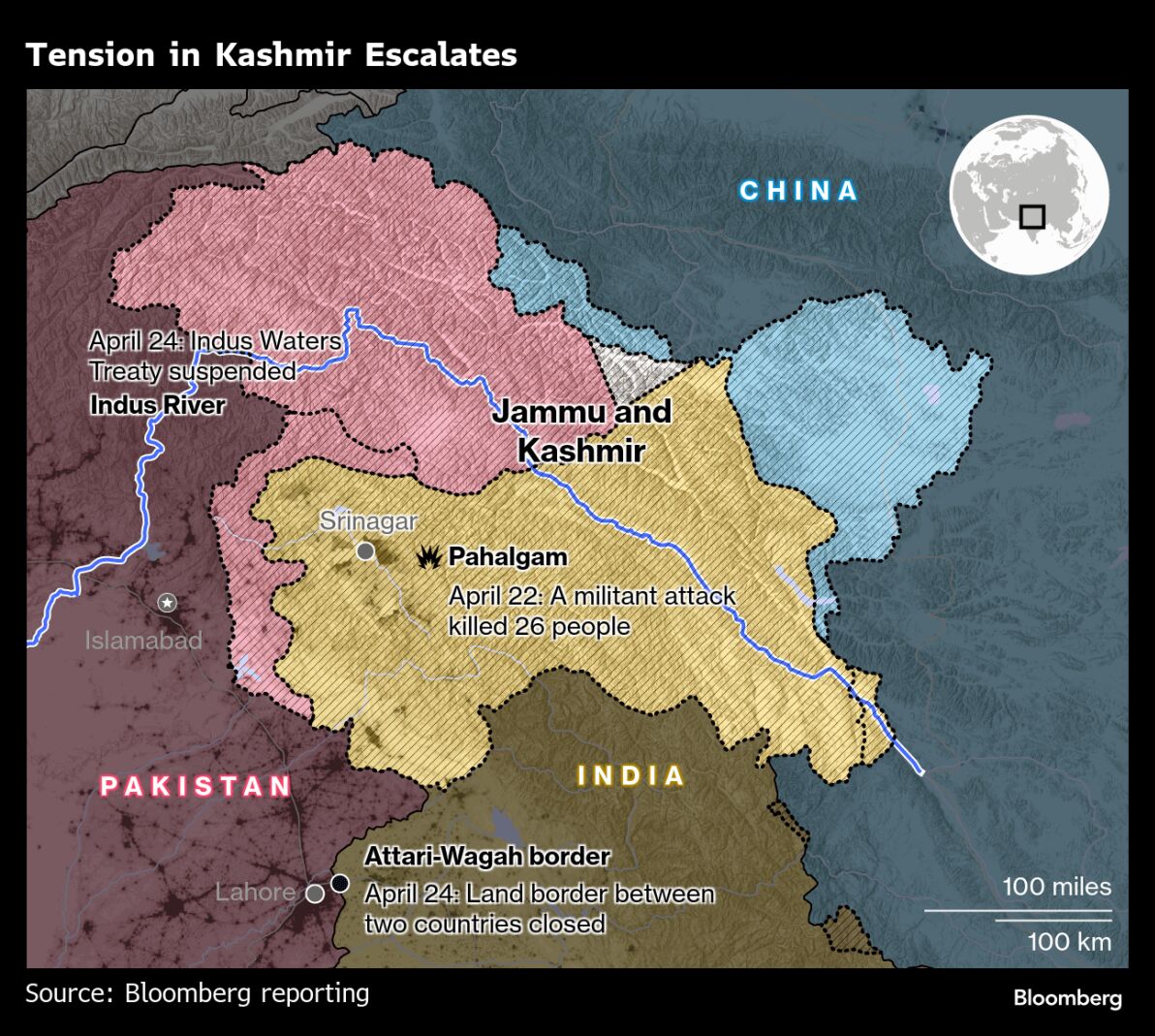 Ketegangan besar terakhir terjadi pada 2019, ketika seorang pelaku bom bunuh diri menewaskan 40 anggota pasukan keamanan India. Kelompok jihadis Jaish-e-Mohammed yang berbasis di Pakistan mengklaim bertanggung jawab atas serangan itu, memicu serangan udara balasan India dua minggu kemudian — yang menjadi serangan pertama ke wilayah Pakistan sejak 1971.