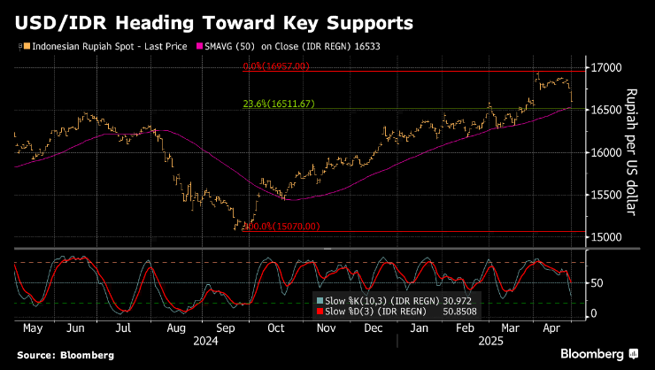 Secara teknikal, pasangan USD/IDR memiliki level support sangat kuat di Rp16.500/US$ akan tetapi bisa ditembus. Momentum bearish yang begitu kuat bisa membawa pelemahan dolar AS yang berarti penguatan rupiah menuju Rp16.200/US$.