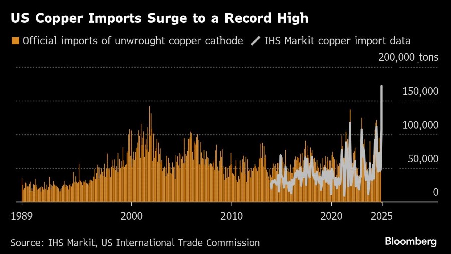 Tembaga mengalir ke AS dalam jumlah yang memecahkan rekor, di mana lebih dari 170.000 ton dikirim pada April karena para pedagang utama berlomba-lomba menghindari potensi tarif. Langkah ini menyebabkan pengetatan pasar fisik, di mana persediaan anjlok pada kecepatan yang memecahkan rekor di Shanghai Futures Exchange dan stok yang tersedia merosot di London Metal Exchange.