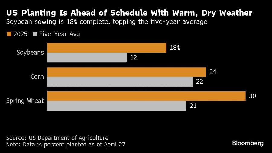 Departemen Pertanian AS akan memperbarui kemajuan penanaman musim semi dan kondisi tanaman dalam laporan mingguan pada Senin (5/5/2025). Kondisi panas dan gersang membuat petani menanam dengan cepat, bahkan ketika curah hujan yang sangat sedikit di beberapa bagian wilayah pertumbuhan Amerika memicu kekeringan dan menimbulkan kekhawatiran akan hasil panen yang lebih sedikit.