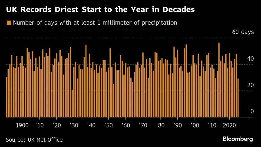 Suhu musim semi yang tinggi di Inggris menyusul awal tahun terkering di negara itu dalam empat dekade terakhir, yang mengancam tanaman biji-bijian di negara itu dan meningkatkan risiko kebakaran hutan.