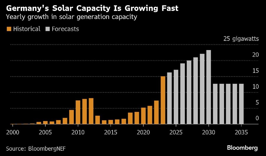 Negara dengan ekonomi terbesar ketiga di dunia ini akan menambah kapasitas tenaga surya sebesar 17 gigawatt tahun ini, yang belum pernah terjadi sebelumnya, memecahkan rekor tersebut setiap tahun hingga setidaknya tahun 2030 dan semakin mendorong generator bahan bakar fosil keluar dari pasar.