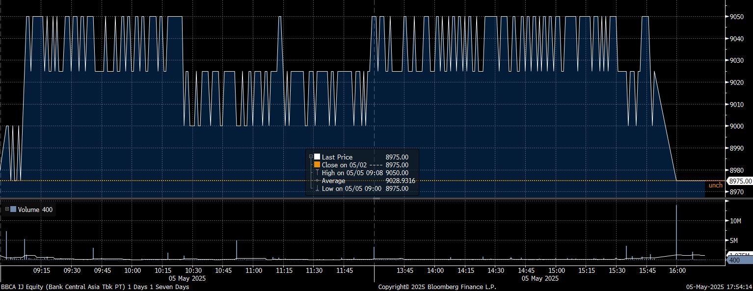 Adapun investor asing mencatatkan net buy terbanyak pada saham PT Bank Central Asia Tbk (BBCA) mencapai Rp171,73 miliar. Berseberangan jauh dengan tren pembelian, saham BBCA tetap stagnan dan flat di posisi Rp8.975/saham.