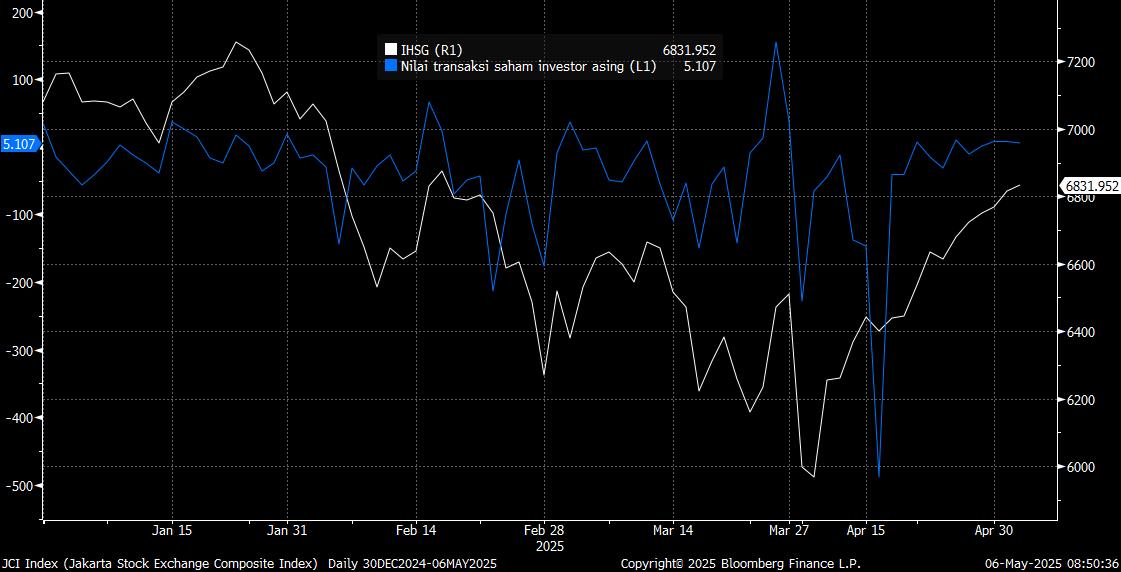 Mengacu data Bloomberg, pemodal global membukukan posisi net buy selama empat hari perdagangan beruntun, senilai total US$ 23,02 juta atau sekitar Rp378,01 miliar mengacu kurs JISDOR terakhir.