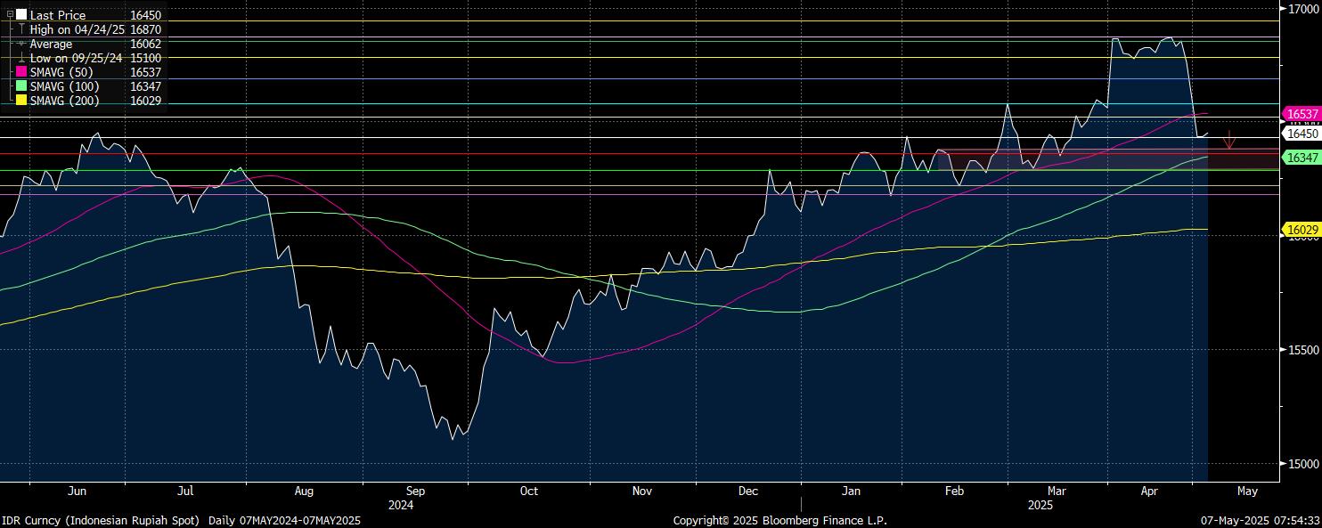 Sementara level support psikologis ada di Rp16.500/US$ dan Rp16.550/US$. Apabila level ini berhasil tertembus, maka mengkonfirmasi laju support selanjutnya di Rp16.600/US$.