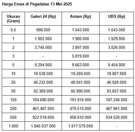 Pegadaian adalah salah satu anak usaha PT Bank Rakyat Indonesia (Persero) Tbk (BBRI). Berikut perkembangan harga emas di Pegadaian selengkapnya, seperti dilansir situs Sahabat Pegadaian: