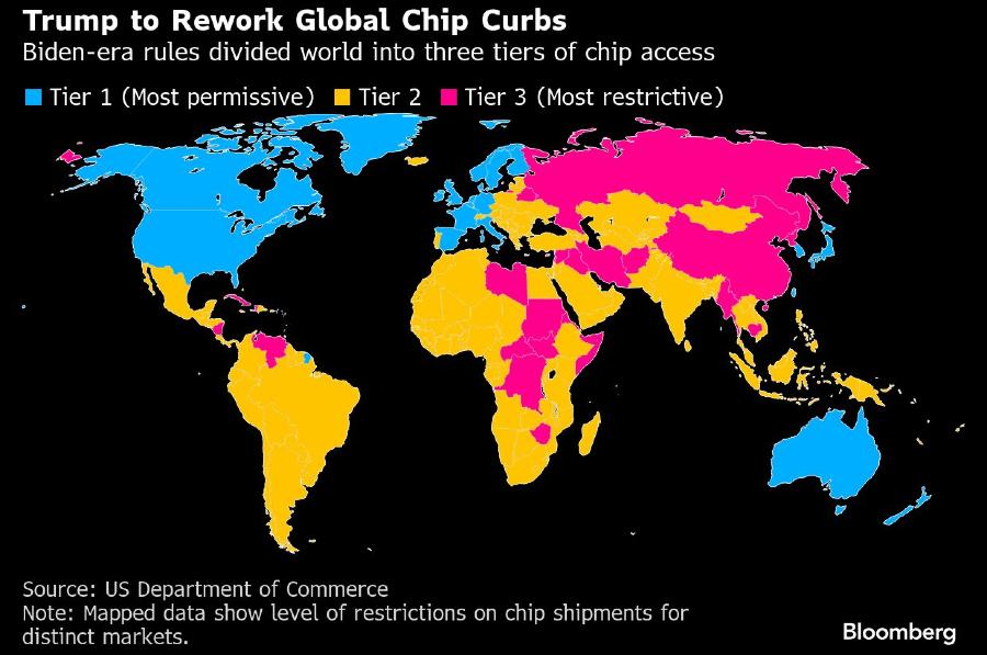 Para pejabat Trump berniat untuk memberlakukan pembatasan pada negara-negara yang telah mengalihkan chip ke China, termasuk Malaysia dan Thailand, kata salah satu orang. Sementara itu, Departemen Perdagangan akan terus menegakkan aturan ekspor chip yang sudah ada secara ketat, menurut sumber, yang tidak mau disebutkan namanya karena rencana tersebut belum dipublikasikan.