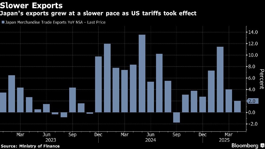 Kementerian Keuangan melaporkan pada Rabu (21/5/2025), ekspor, yang diukur berdasarkan nilai, naik 2% pada April dari tahun sebelumnya. Ekspor sedikit di bawah estimasi rata-rata analis dengan kenaikan 2,5%. Impor turun 2,2%, dibandingkan dengan perkiraan rata-rata penurunan 4,2%.