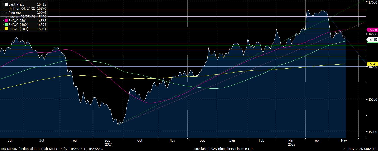 Level resistance selanjutnya menarik dicermati pada Rp16.340/US$, yang saat ini makin mendekati resistance psikologis potensial.