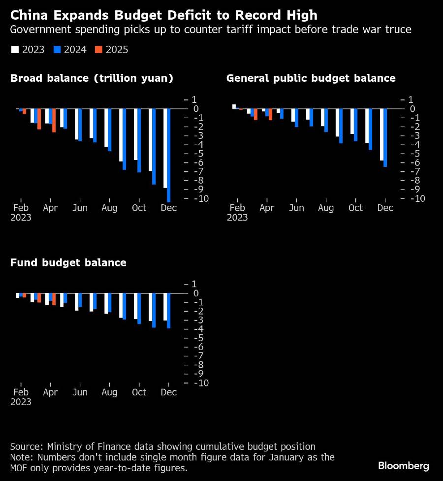 Bloomberg, Stimulus fiskal China mendorong defisit anggaran selama empat bulan ke rekor tertinggi karena pemerintah meningkatkan dukungan untuk perekonomiannya selama eskalasi perang dagang dengan AS.