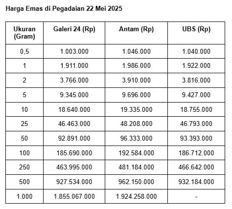 Pegadaian adalah salah satu anak usaha PT Bank Rakyat Indonesia (Persero) Tbk (BBRI). Berikut perkembangan harga emas di Pegadaian selengkapnya, seperti dilansir situs Sahabat Pegadaian: