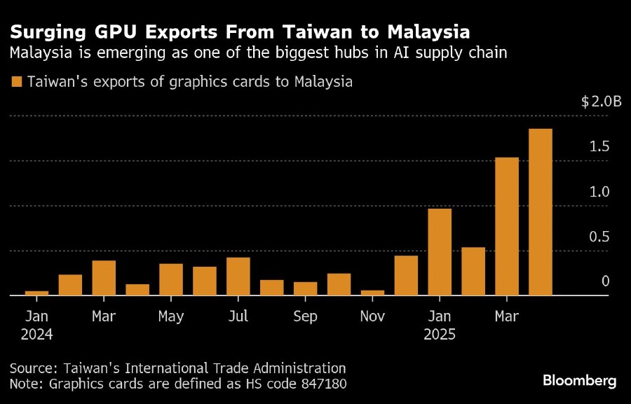 Para pejabat Trump tahun ini menekan pihak berwenang Malaysia untuk menindak tegas transshipment semikonduktor ke Tiongkok. Malaysia juga berada di tengah-tengah kasus pengadilan di Singapura, di mana tiga orang didakwa melakukan penipuan karena diduga menyamarkan pelanggan utama server AI yang mungkin berisi chip Nvidia kelas atas yang dilarang masuk ke China. Para pejabat Malaysia sedang menyelidiki masalah ini.
