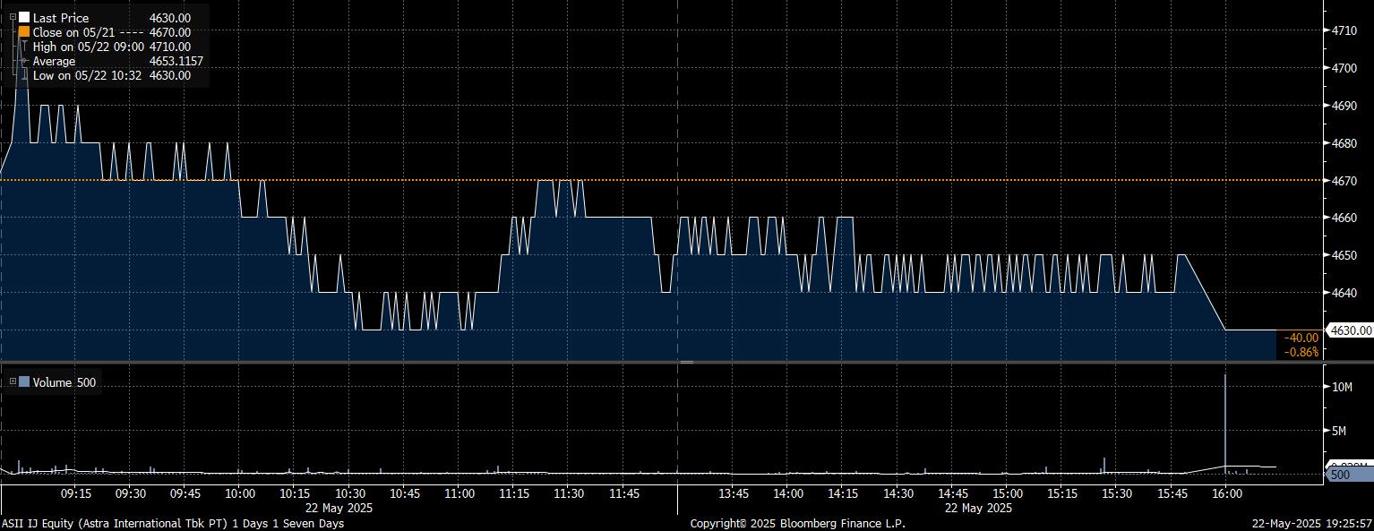 Sedang, investor asing net sell yang besar pada saham PT Astra International Tbk (ASII) mencapai Rp77,91 miliar. Imbas tekanan jual yang deras, saham ASII melemah 0,86% dan ditutup di posisi Rp4.630/saham.