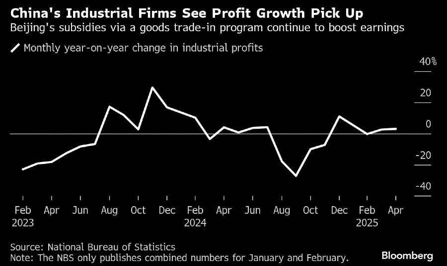 Bloomberg, Perusahaan-perusahaan industri China mengalami kenaikan laba lebih cepat pada April. Pasalnya, program tukar tambah pemerintah telah mendorong permintaan produk manufaktur di tengah tekanan tarif agresif AS.