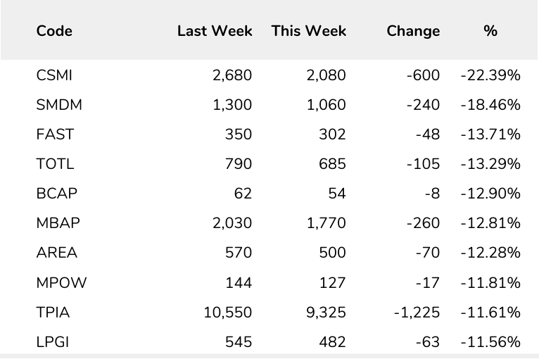 Mayoritas kumpulan saham-saham tercatat di zona merah pekan ini. Tiga indeks yang membukukan pelemahan terdalam, adalah saham-saham teknologi (-1,97%), saham properti (-1,71%), dan saham konsumen non primer (-1,19%).