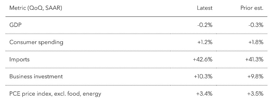 Pertumbuhan ekonomi terseret turun pada awal tahun oleh lonjakan impor karena pelaku bisnis AS mencoba mengatasi tarif Presiden Donald Trump. Belanja konsumen yang lebih moderat, serta penurunan belanja pemerintah federal, juga membebani data tersebut.