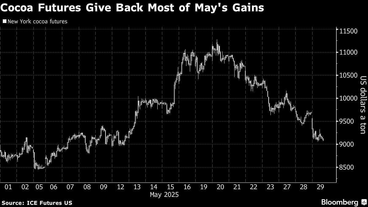 Arbitras antara kontrak New York dan kontrak berjangka London untuk pengiriman Juli menyempit menjadi sekitar US$750 per ton, dari sebelumnya US$875 awal pekan ini. Arbitras ini dapat digunakan untuk menilai perbandingan biaya pasokan kakao di AS dengan wilayah lain, dan sebelumnya melebar karena harga kakao New York melonjak setelah penerapan tarif Trump pada April lalu.