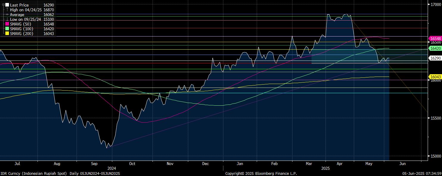 Secara teknikal nilai rupiah berpotensi menguat terbatas menuju resistance terdekat di level Rp16.250/US$ dan resistance selanjutnya Rp16.200/US$ sebagai level optimis penguatan rupiah jangka pendek dalam time frame daily.