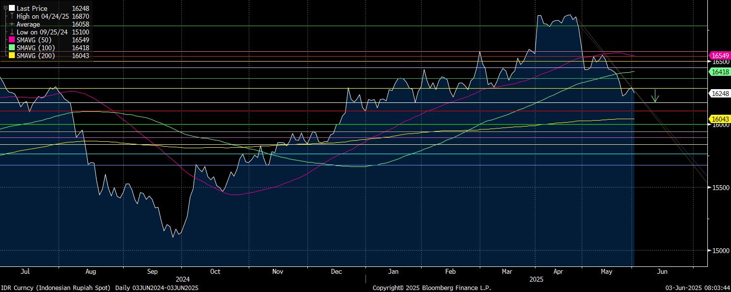 Kinerja the greenback Dolar AS memberi angin penguatan bagi mata uang yang jadi lawannya, tak terkecuali di emerging Asia. Kontrak rupiah Non Deliverable Forward (NDF) di pasar mancanegara kemarin menguat 0,44% dan pagi ini bergerak di makin perkasa di kisaran Rp16.284/US$, dilaporkan 3 Juni 2025 lalu.
