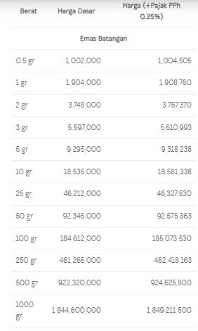 Berikut daftar harga emas Logam Mulia Antam selengkapnya: