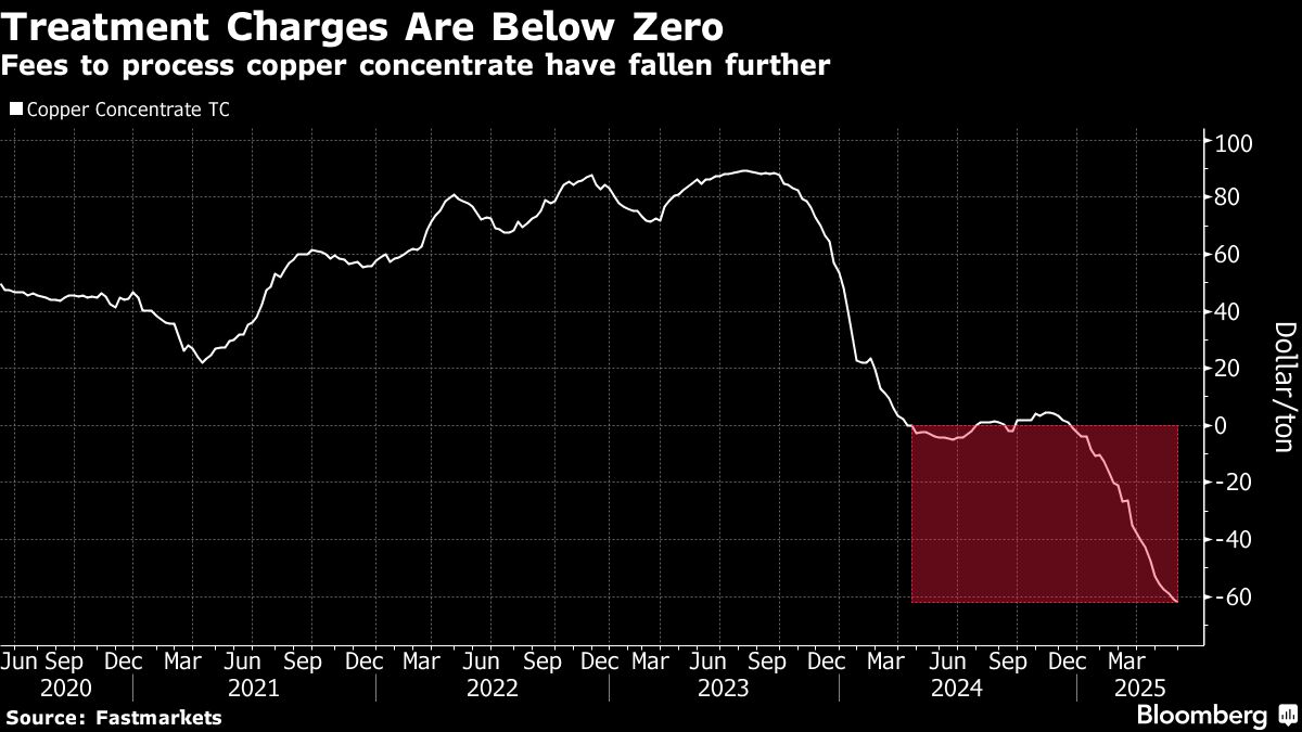 Pasokan berjangka kini juga terancam merosot ke wilayah negatif, yang berarti pabrik peleburan secara efektif membayar lebih banyak untuk bijih tembaga daripada nilai logam yang terkandung di dalamnya.